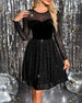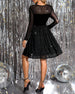SPECIFIKATIONER Stil: Fest Material: Nät,Sammet Klänningstyp: A-linje Klänning längd: Knälängd Urringning: Rund nacke Mönstertyp: Enfärgade Typ av ärm: Vanlig ärm Ärmlängd: Långärmad Detaljer: Lappverk,Genomskinlig Passform typ: Vanlig Säsong: Höst,Vinter Tillfälle: Dagligen Paketet innehåller: 1 x Klänning STORLEKSTABELL(cm) Storlek Byst Lä...