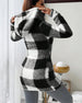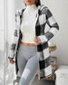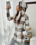 Kvinnors Rutiga Fleecejacka Med Huva Och Lång Ärm