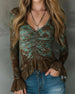 Blus Samlad Rysch V-Ringning Långärmad