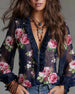 Blus Blommig V-Ringning Ryschad