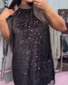 Klänning Glitter Panel Rund Halsringning