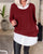 Avslappnad, falsk tvådelad topp med lapptäcke och lång ärm