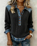 SPECIFIKATIONER Topptyp: Toppar Stil: Enkel Material: Bomullsblandningar,Plysch Tillfälle: Dagligen Urringning: V-hals_V Typ av ärm: Vanlig ärm Ärmlängd: Långärmad Passform typ: Vanlig Säsong: Höst,Vinter Detaljer: Lappverk Paketet innehåller: 1 x Topp STORLEKSTABELL(cm) Storlek Byst Längd S 92 65 M 96 66.5 L 100 68 XL 106 69.5 2XL...
