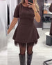Enfärgad Klänning Med Volanger Och Lapptäcktsdetaljer