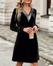 Glittrande Klänning Med V-Ringning Och Lapptäcktsdetaljer