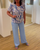 Blommig blus med V-ringad klockärm