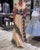 V-ringad kortärmad klänning i leopardmönstrad