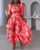 Klänning med djup V-klockärm med bladtryck