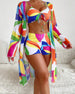 Modetryckt bikinitäckningsset i tre delar
