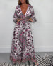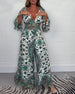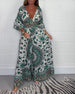 SPECIFIKATIONER Stil: Enkel, Semester Material: 3% Spandex, 97% Polyester Mönstertyp: Tryckt Urringning: V-hals Typ av ärm: Flare ärm Ärmlängd: Långärmad Typ Byxor: Breda ben Byxlängd: Lång Passform typ: Vanlig Säsong: Vår, Sommar Paketet innehåller: 1 x Jumpsuits STORLEKSTABELL(cm) Storlek Byst Längd Armlängd Axlar S 98 135 4...
