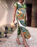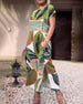 SPECIFIKATIONER Stil: Enkel Material: 97% Polyester, 3% Spandex Klänningstyp: A-linje Klänning längd: Maxi Urringning: Rund nacke Mönstertyp: Löv Typ av ärm: Vanlig ärm Ärmlängd: Kortärmad Detaljer: Knappar, Slits Passform typ: Vanlig Säsong: Vår, Sommar, Höst Tillfälle: Dagligen Paketet innehåller: 1 x Klänning STORLEKSTABELL(cm) ...