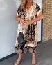 SPECIFIKATIONER Stil: Enkel Material: 97% Polyester, 3% Spandex Klänningstyp: Skiftklänning Klänning längd: Knälängd Urringning: V-hals Mönstertyp: Tryckt Typ av ärm: Vanlig ärm Ärmlängd: Kortärmad Detaljer: Ficka Passform typ: Vanlig Säsong: Vår, Sommar Tillfälle: Dagligen, Semester Paketet innehåller: 1 x Klänning STORLEKSTABELL(cm) ...
