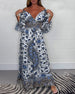 SPECIFIKATIONER Stil: Enkel Material: Bomullsblandningar Klänningstyp: A-linje Klänning längd: Maxi Urringning: V-hals_V Mönstertyp: Tryckt Typ av ärm: Flare ärm Ärmlängd: 3/4 ärm Passform typ: Vanlig Säsong: Vår, Sommar, Höst Tillfälle: Dagligen Paketet innehåller: 1 x Klänning STORLEKSTABELL(cm) Storlek Byst Längd S 95 136 M ...