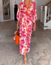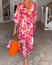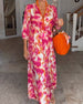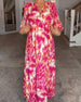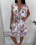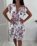 Klänning med korta ärmar, blommigt tryck och V-ringning