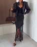 Trendig långärmad klänning i enfärgad paljettpatchwork