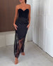 Kortärmad rhinestone patchwork-klänning