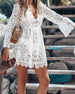 SPECIFIKATIONER Stil: Semester Material: Bomullsblandningar Klänningstyp: A-linje Klänning längd: Över knä Urringning: V-hals_V Mönstertyp: Enfärgade Typ av ärm: Flare ärm Ärmlängd: Långärmad Detaljer: Urgröpande, Spets Passform typ: Vanlig Säsong: Vår, Sommar, Höst Tillfälle: Semester Paketet innehåller: 1 x Klänning STORLEKSTABELL(cm) ...