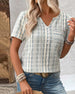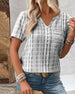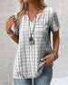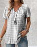 SPECIFIKATIONER Topptyp: T-shirt Stil: Enkel Material: Bomullsblandningar Tillfälle: Dagligen Urringning: V-hals_V Mönstertyp: Pläd Typ av ärm: Vanlig ärm Ärmlängd: Kortärmad Passform typ: Vanlig Säsong: Vår,Sommar Detaljer: Ficka Paketet innehåller: 1 x T-shirt STORLEKSTABELL(cm) Storlek Byst Längd S 97 68 M 101 69.5 L 105 71 XL 111...