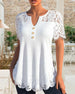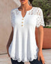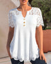 SPECIFIKATIONER Topptyp: T-shirt Stil: Elegant Tillfälle: Dagligen Urringning: V-hals_V Mönstertyp: Enfärgade Typ av ärm: Vanlig ärm Ärmlängd: Kortärmad Passform typ: Vanlig Säsong: Vår, Sommar, Höst Material: Polyester Detaljer: Lappverk, Spets Paketet innehåller: 1 x T-shirt STORLEKSTABELL(cm) Storlek Byst Längd Armlängd S 94 ...