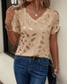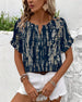 T-Shirt V-Ringad Bladtryck Casual