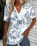 T-Shirt Blommigt Tryck V-Ringad Kortärmad