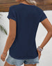 SPECIFIKATIONER Topptyp: T-shirt Stil: Enkel Material: Bomullsblandningar Tillfälle: Dagligen Urringning: V-hals_V Mönstertyp: Enfärgade Typ av ärm: Vanlig ärm Ärmlängd: Kortärmad Passform typ: Vanlig Säsong: Vår,Sommar,Höst Detaljer: Lappverk,Knappar,Spets Paketet innehåller: 1 x T-shirt STORLEKSTABELL(cm) Storlek Byst Längd S 92 65 M 9...