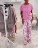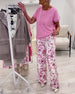 T-Shirt V-ringning Blommönster Kortärmad