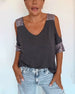 T-shirt Off-Shoulder Spets Enfärgad