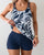 Tankini Ribbad Strandshorts Tryckt Boxertrosa