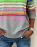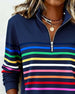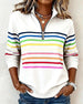 Moderiktig Randig Sweatshirt Med Halvlång Dragkedja Och Regnbågsmönster