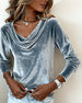Långärmad Topp I Sammet Med Enfärgad Färg