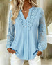 SPECIFIKATIONER Topptyp: Blusar Stil: Elegant Material: Bomullsblandningar Tillfälle: Dagligen Urringning: V-hals_V Mönstertyp: Enfärgade Typ av ärm: Lykthylsa Ärmlängd: Långärmad Passform typ: Vanlig Säsong: Höst,Vinter Detaljer: Spets Paketet innehåller: 1 x Blus STORLEKSTABELL(cm) Storlek Byst Längd S 97 65 M 101 66.5 L 105 68 XL ...
