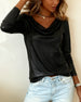 Långärmad Topp Med V-Ringning Och Kontrast I Enfärg