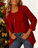 Löst Sittande Topp Med V-Ringning Och Jultryck Med Vinglas