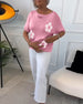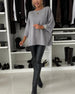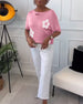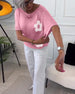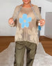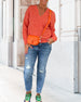 Avslappnad blommig rund halsad långärmad ihålig tröja