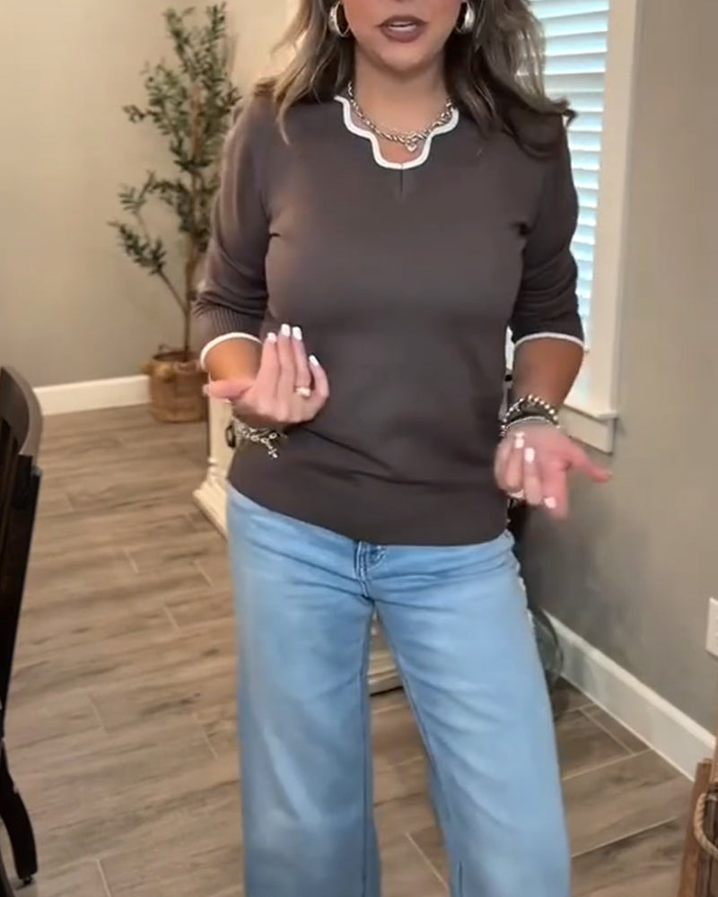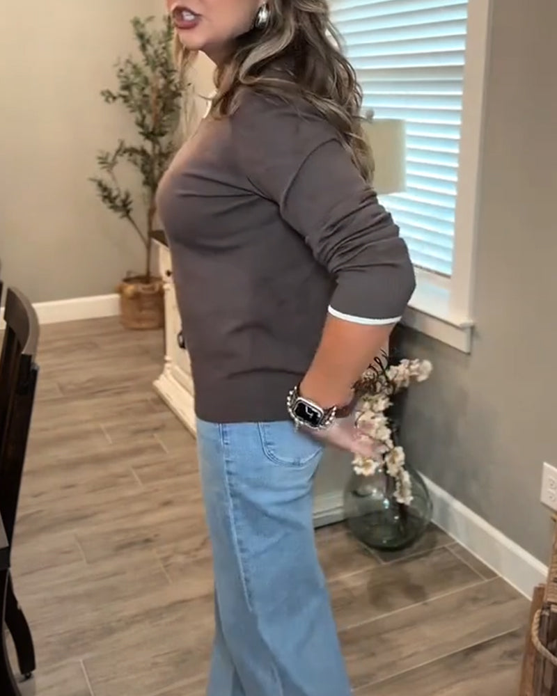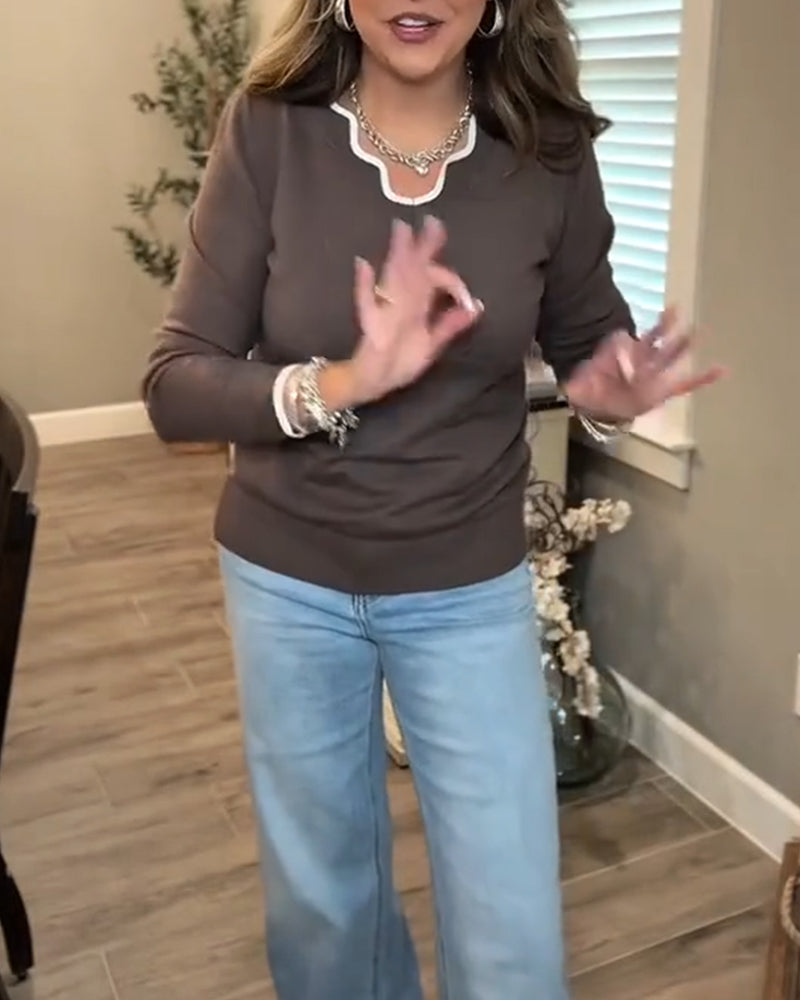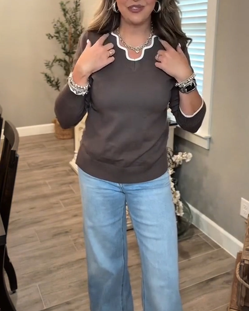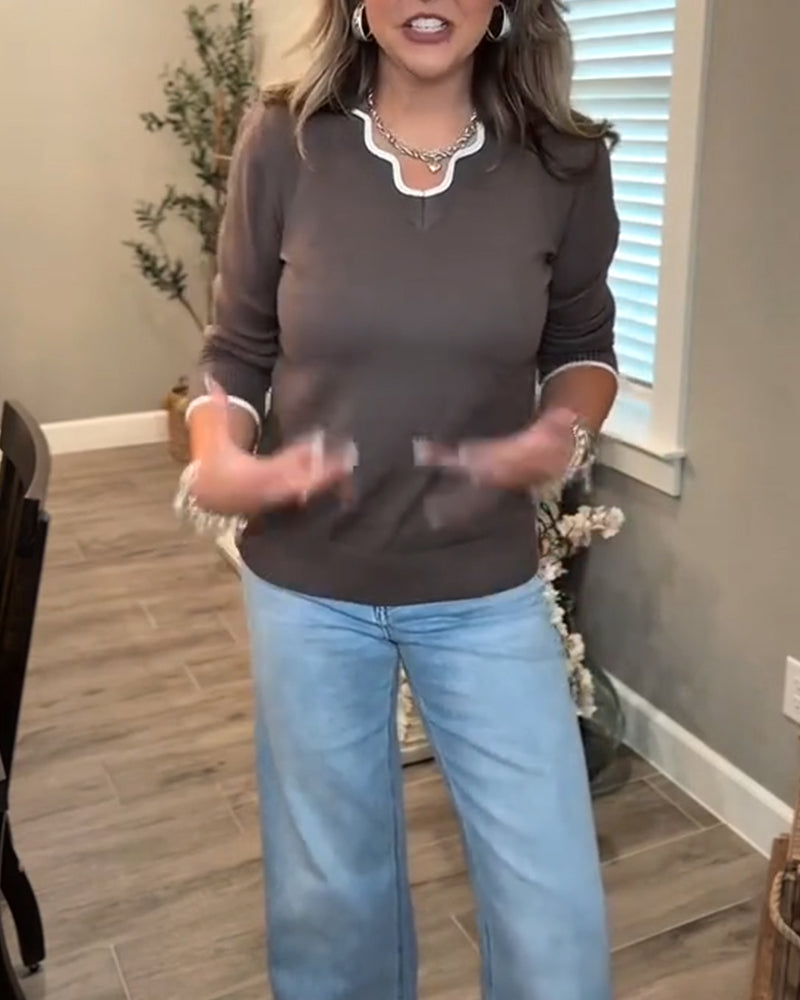 Avslappnad pullover med enfärgad v-ringning