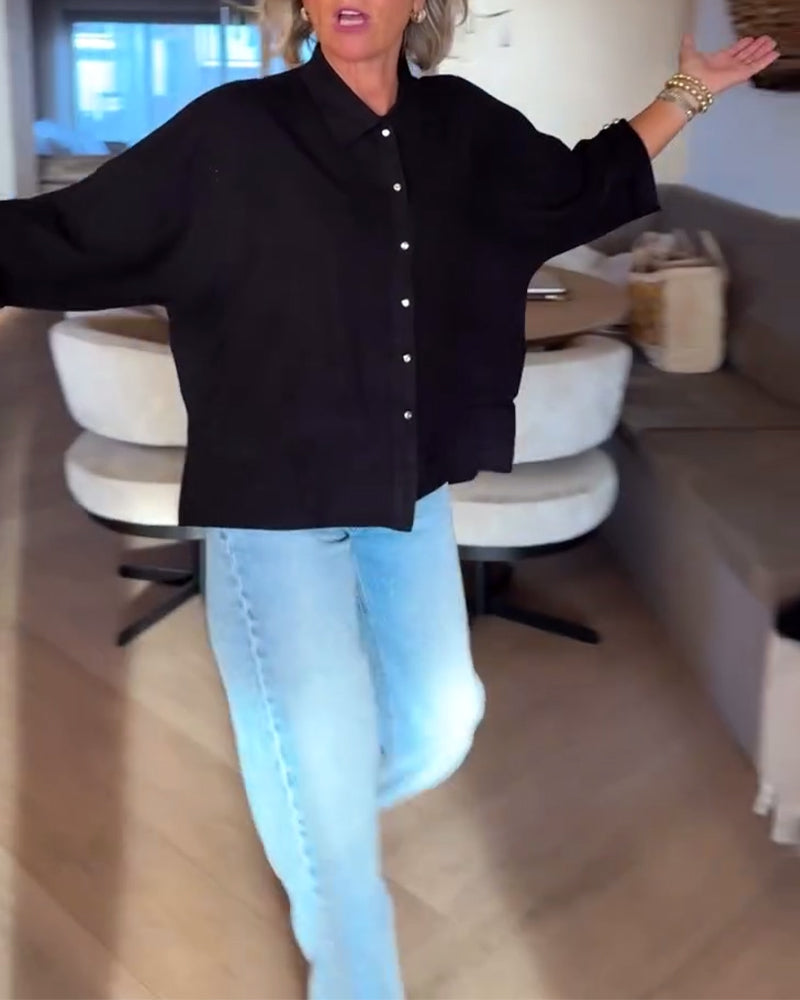 Tröja Med Lös Passform, Fladdermössarmar Och Fickor