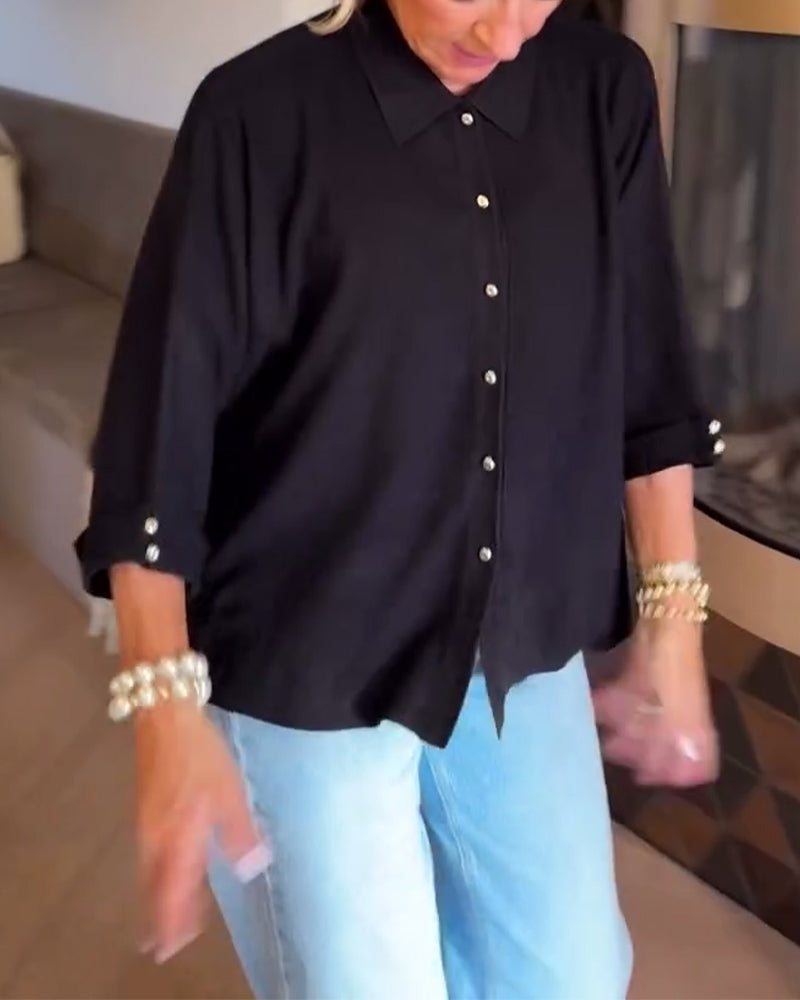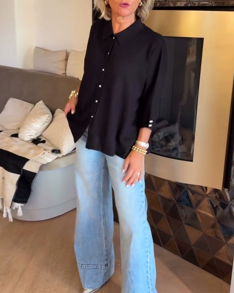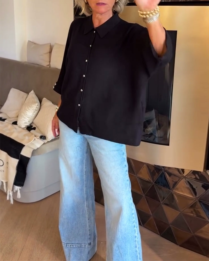Tröja Med V-Hals, Knäppt Och Asymmetrisk Egenskaper