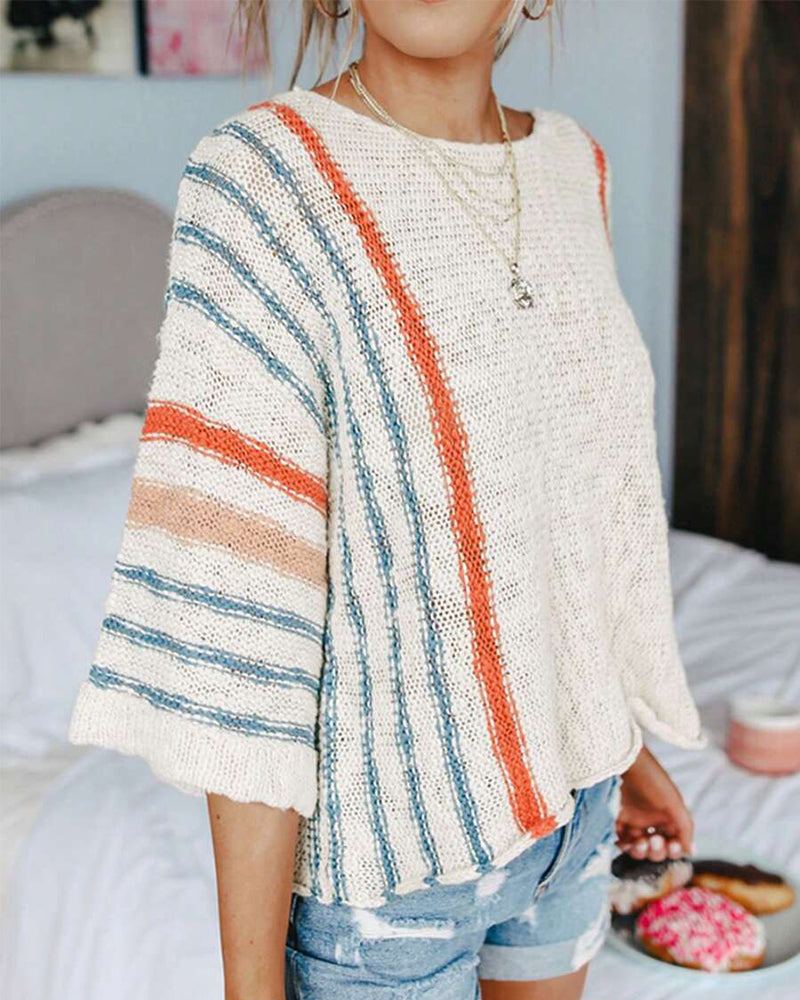 Icon1 Löst Sittande Randig Kontrastsweater