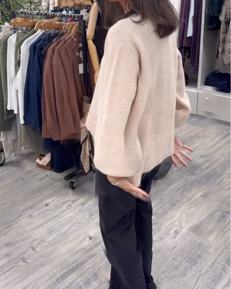 Tröja Enfärgad Raglanärm Spänne Kablestickning