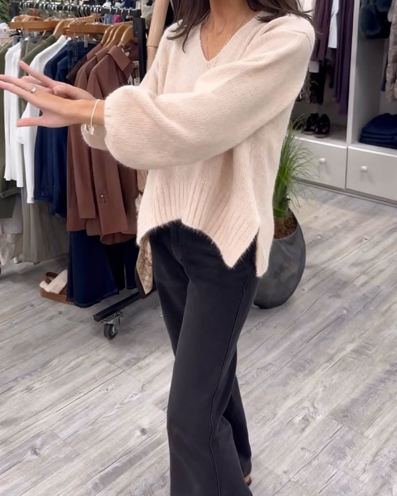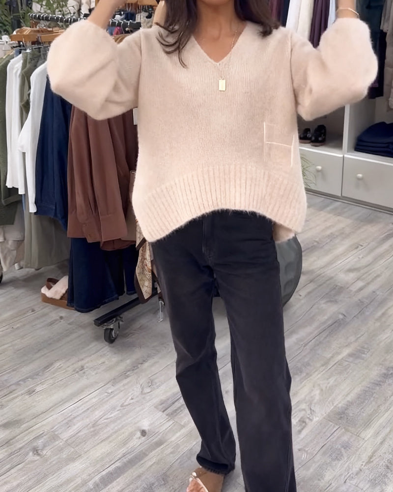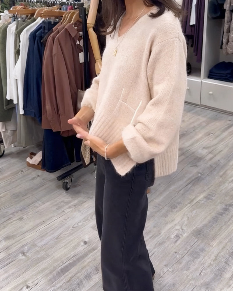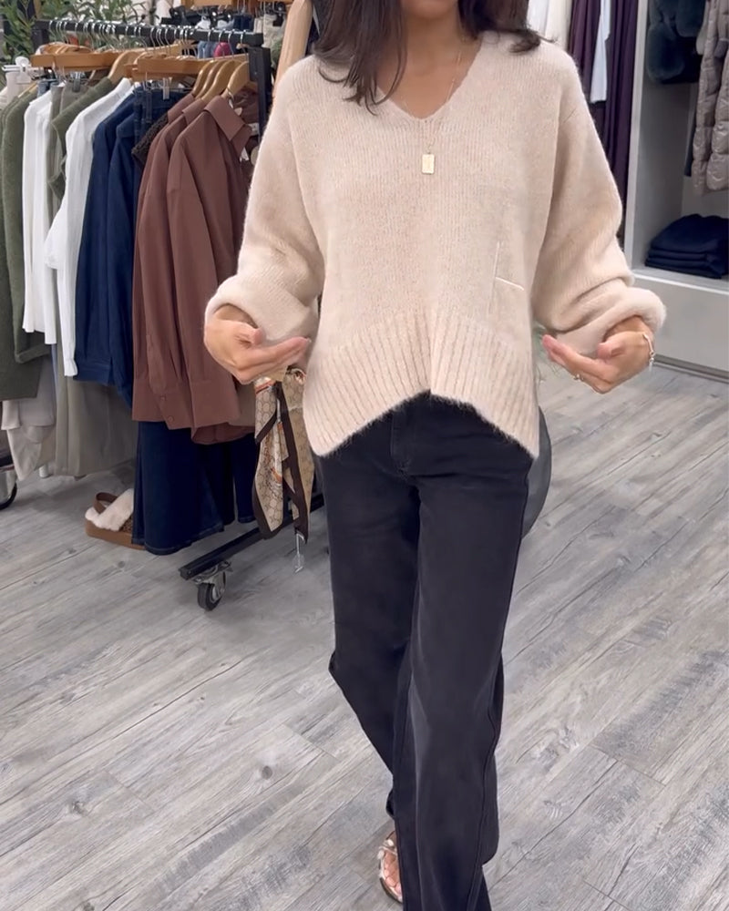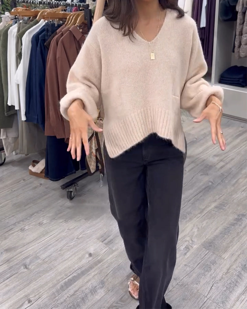 Icon1 Pullover Avslappnad Stil Mjuk V-Ringning