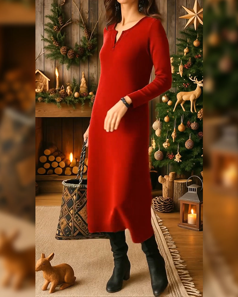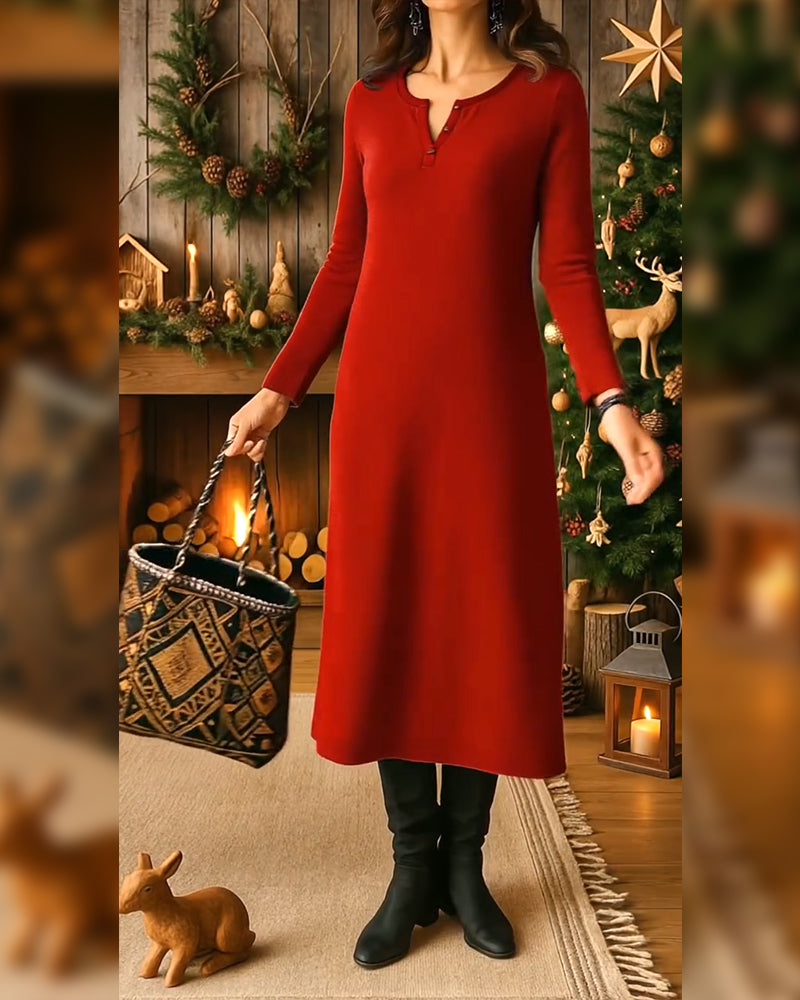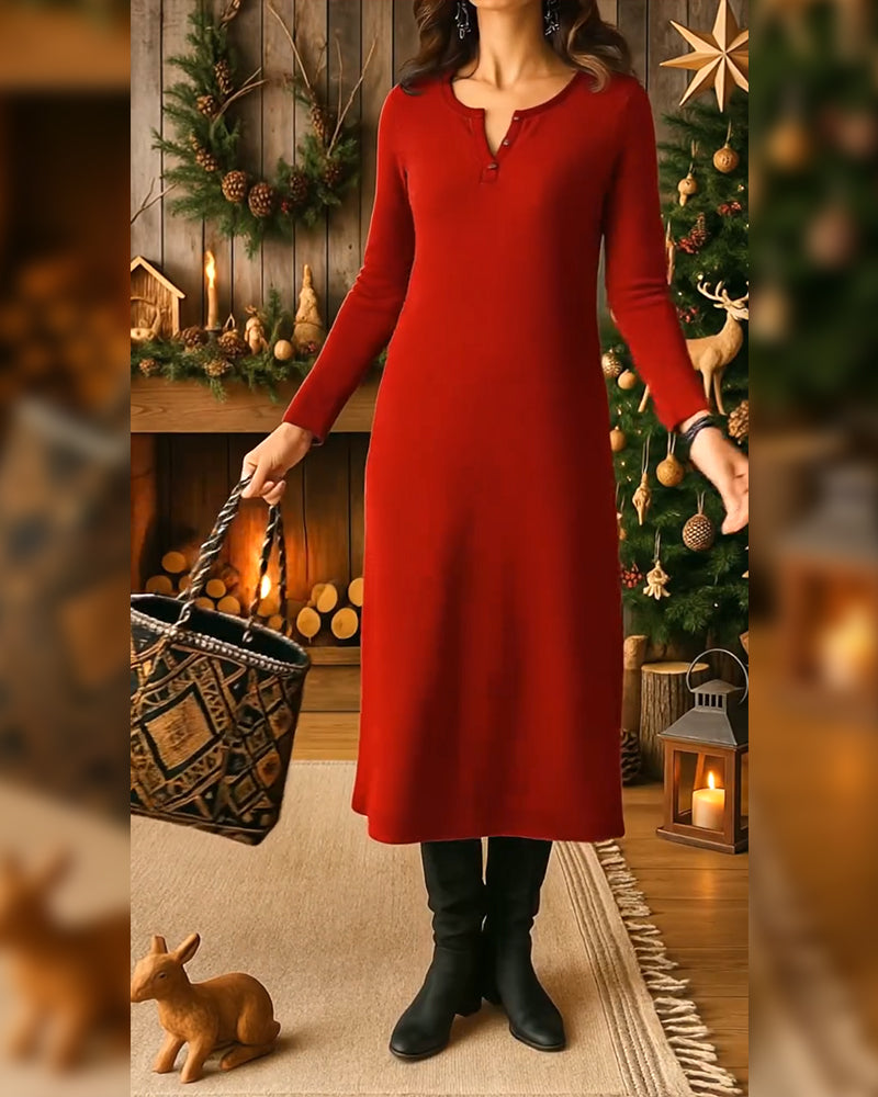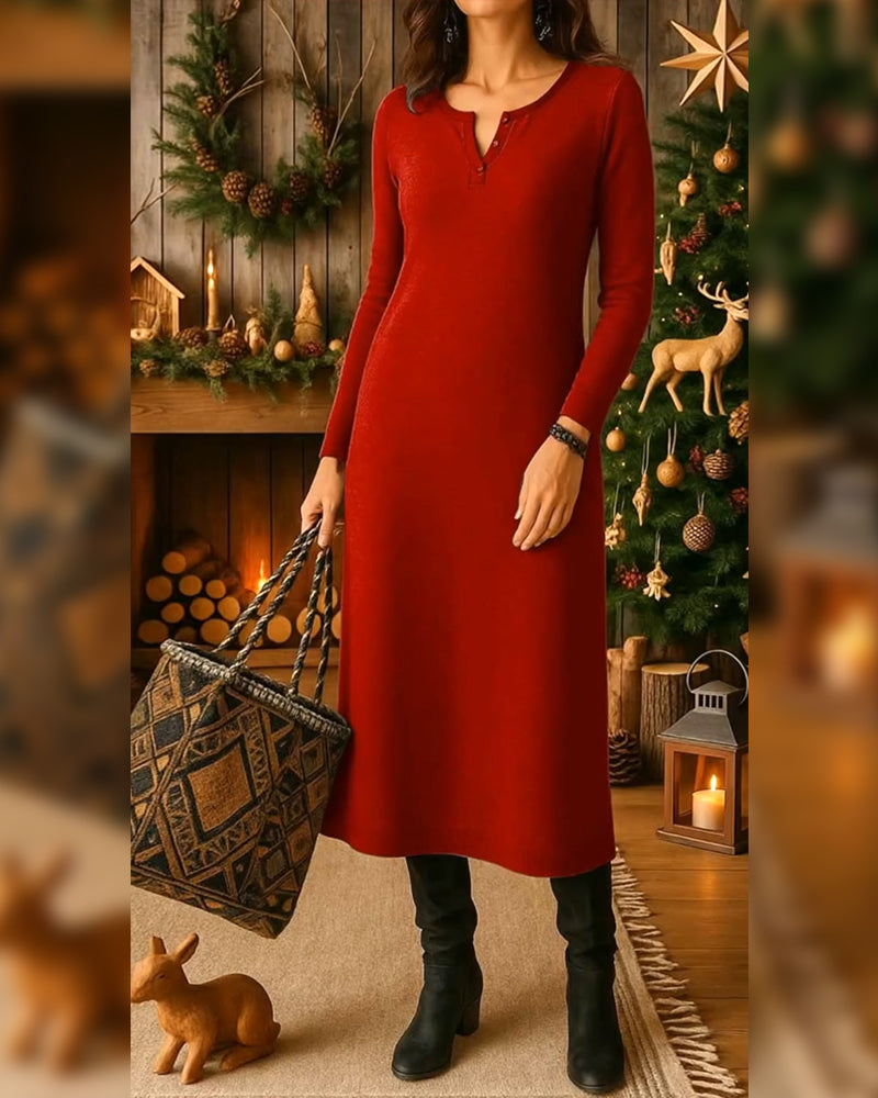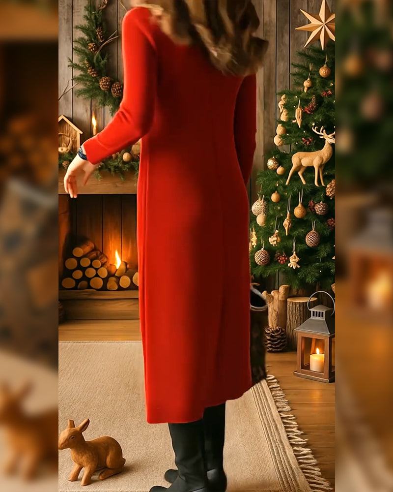 Icon1 Stickad Klänning Med Lång Ärm Och Knäppt Midja