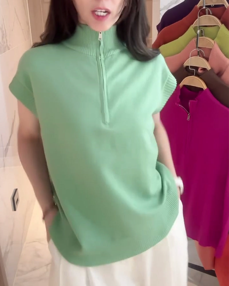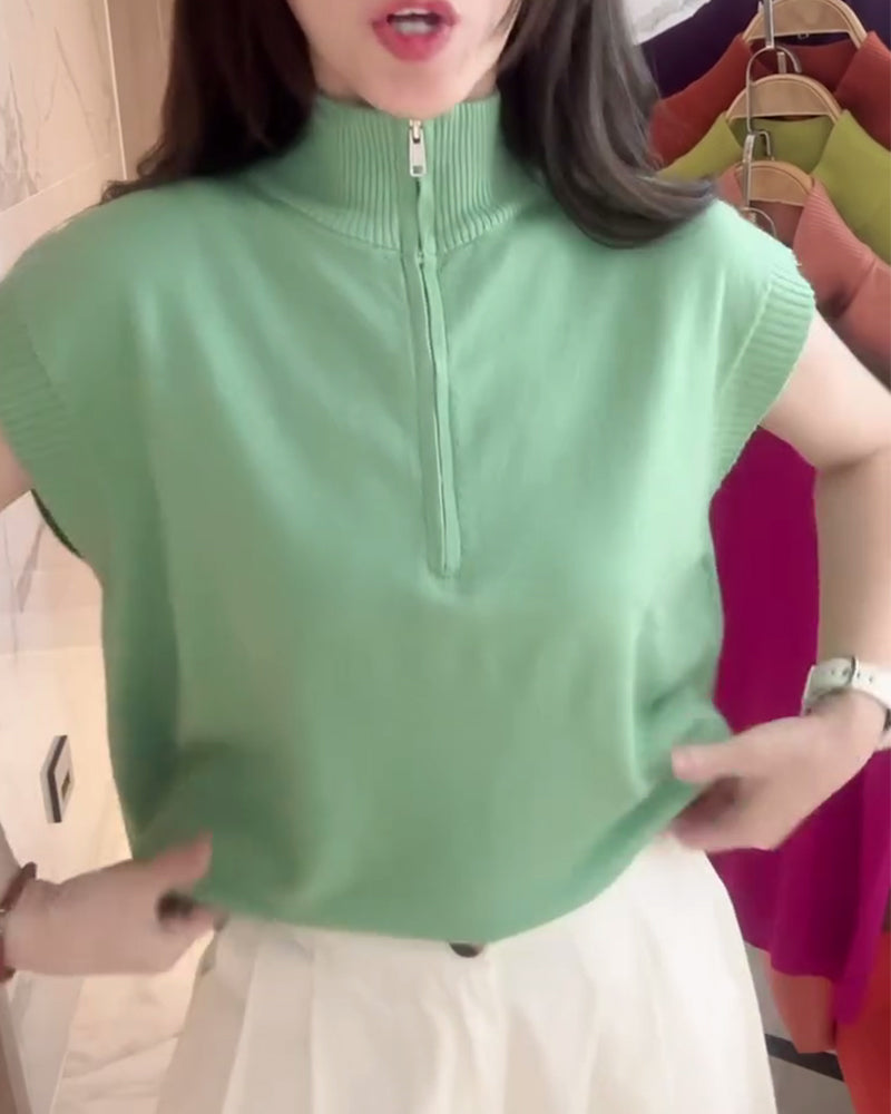 Icon1 Stickad pullover med dragkedja och avslappnad design