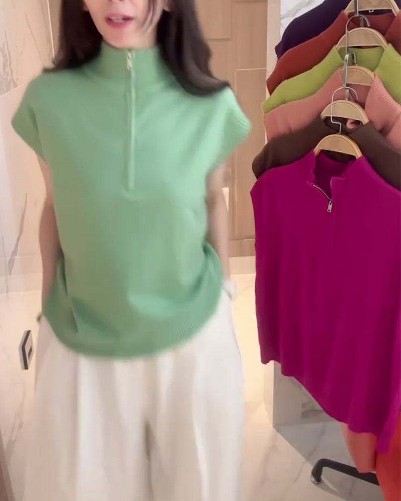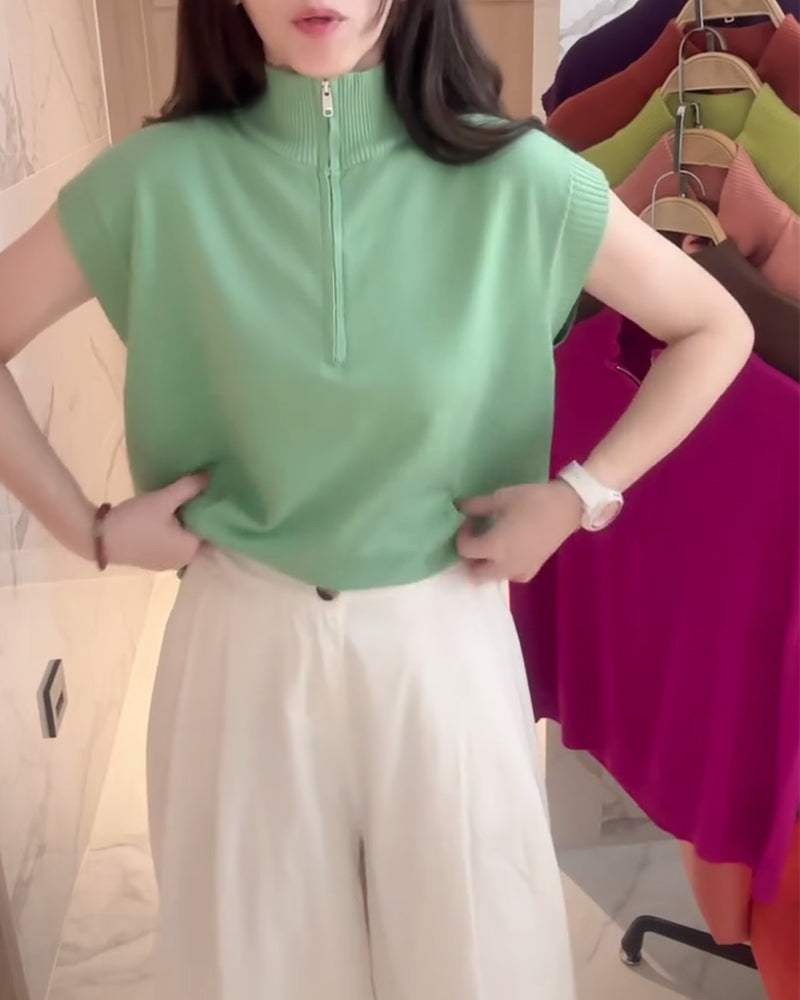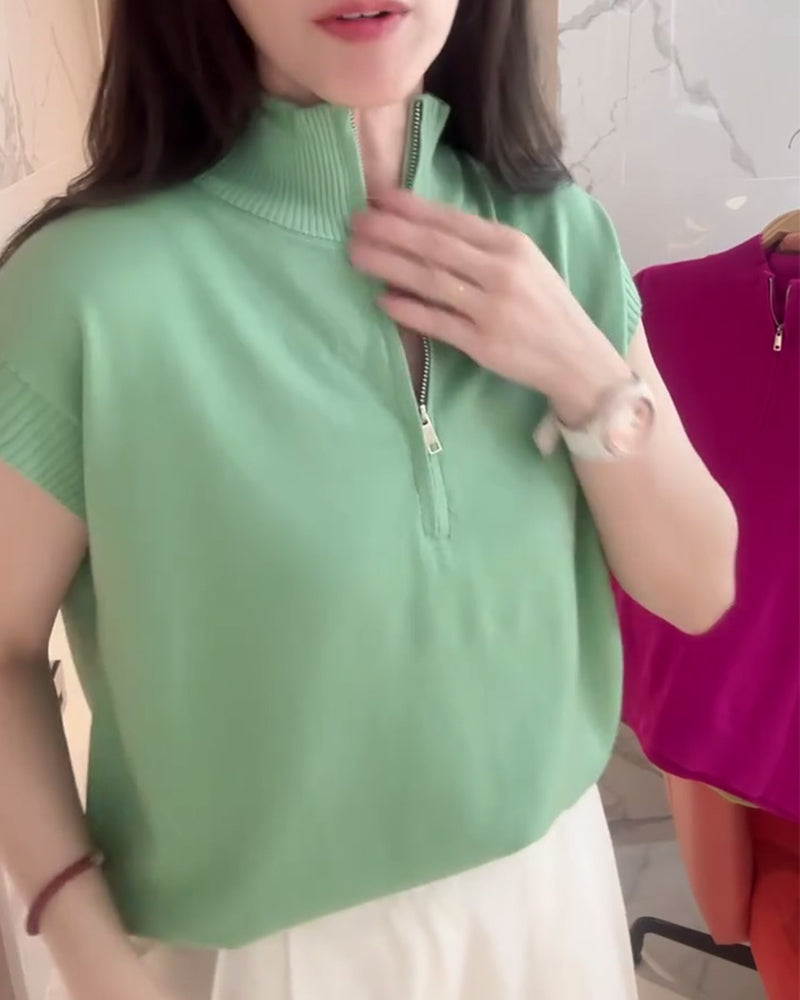 Pullover Med Halvdragkedja Och Modernt Ståkrage