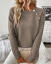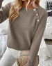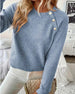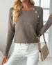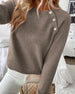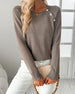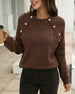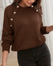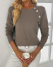 Enkel Stickad Topp Med Knappslutning Och V-ringning För Kvinnor