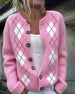 Kardigan Med Knapp - och Diamantplaid - Egenskaper