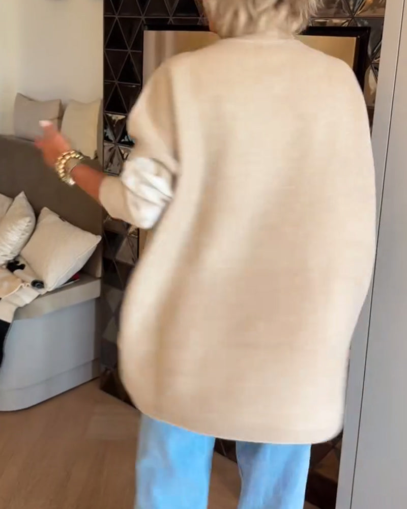 Lös Tröja Med Kontrastrandiga Och Dropped Shoulder-Ärmar