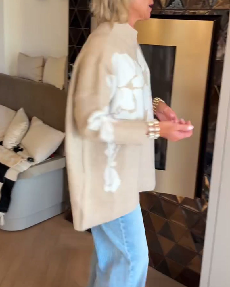 Tröja Enfärgad Raglanärm Spänne Kablestickning