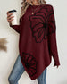 Avslappnad blommig rund halsad långärmad ihålig tröja