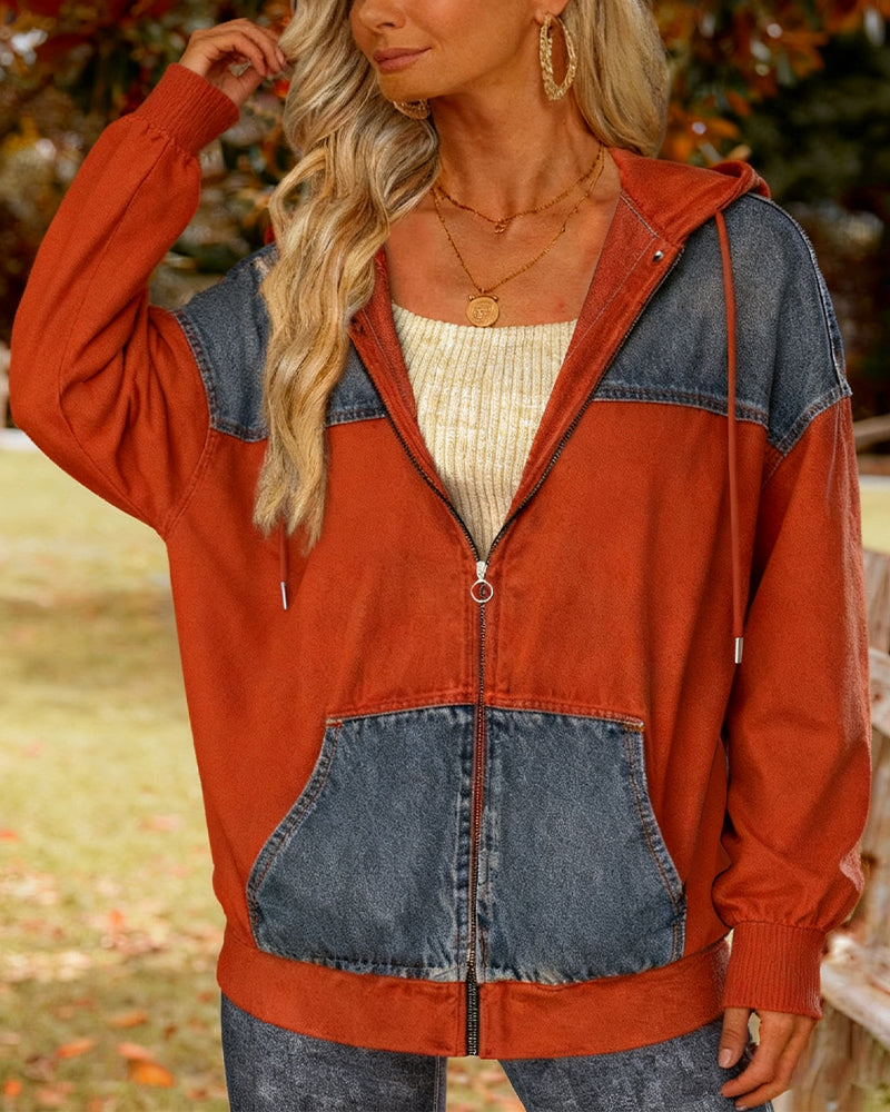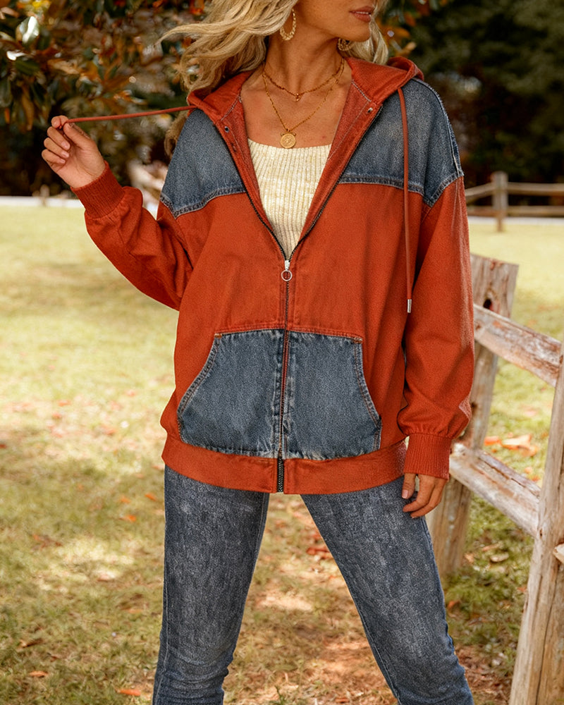 Sweatshirt Modig Krage Färgblock Hopfogad